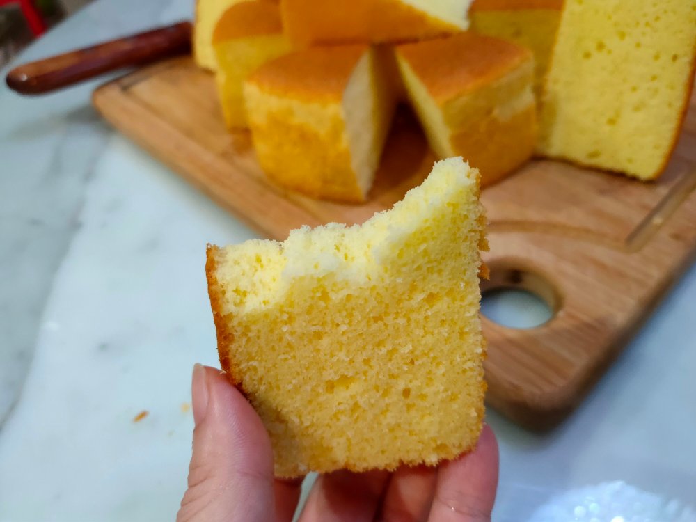 I like to bake this every now and then. It has all the lightness and fluffiness of a sponge, and yet so rich tasting just like a pound cake. For a 3 egg recipe, it packs in almost half a block of butter, so don’t be deceived by it’s ‘lightness’.