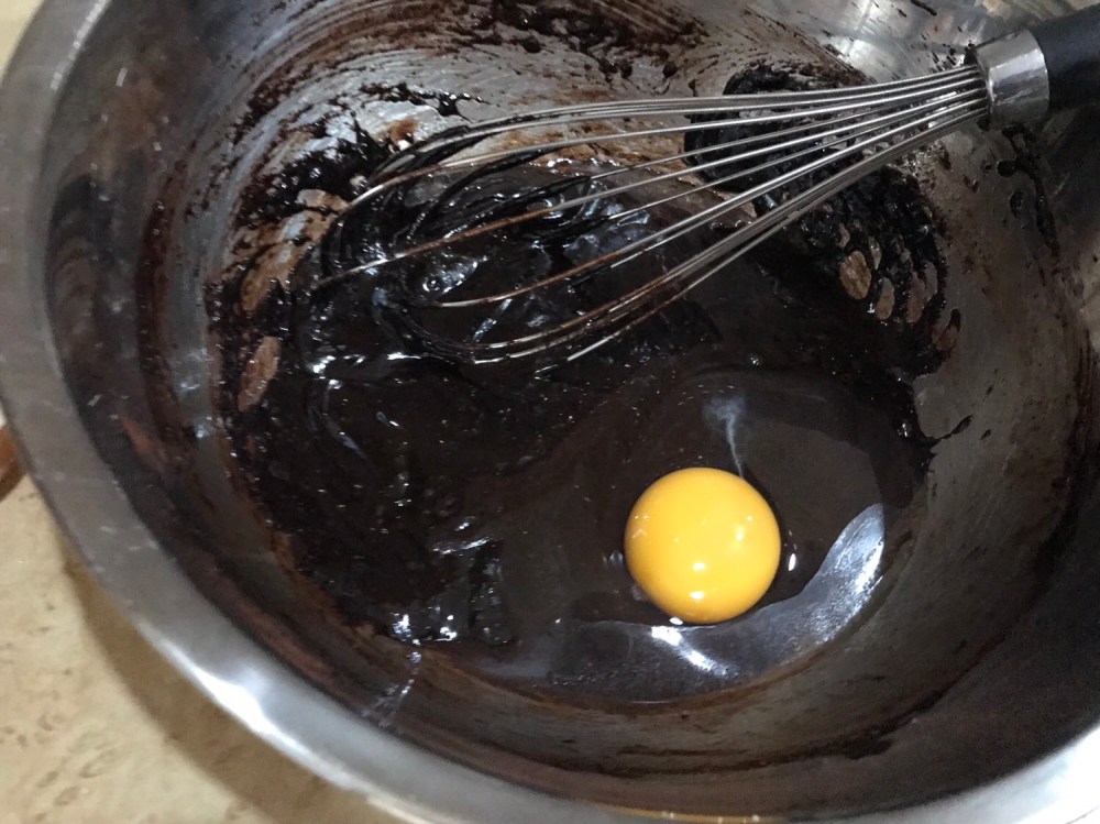 1. Add the butter, sugar, cocoa powder and salt into a mixing bowl. Double boil till all butter has melted and stir to an even grainy mixture.