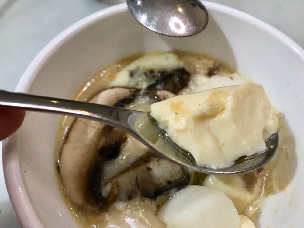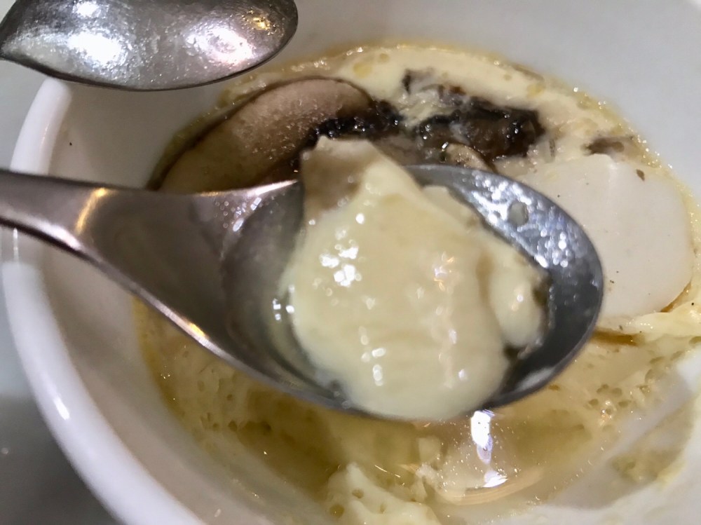 7. To check for done-ness, eggs should be firm but the centre portion may seemed slightly watery/ jiggly and that’s fine. We don’t want the pudding over-cooked. If bubbles appear or worse wrinkling, then eggs are over done or the flames were too big.