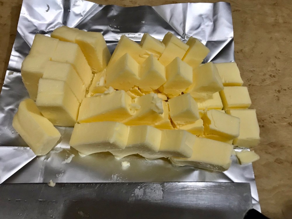 7. Start to add butter one cube at a time. Butter must be softened but not yet melted.