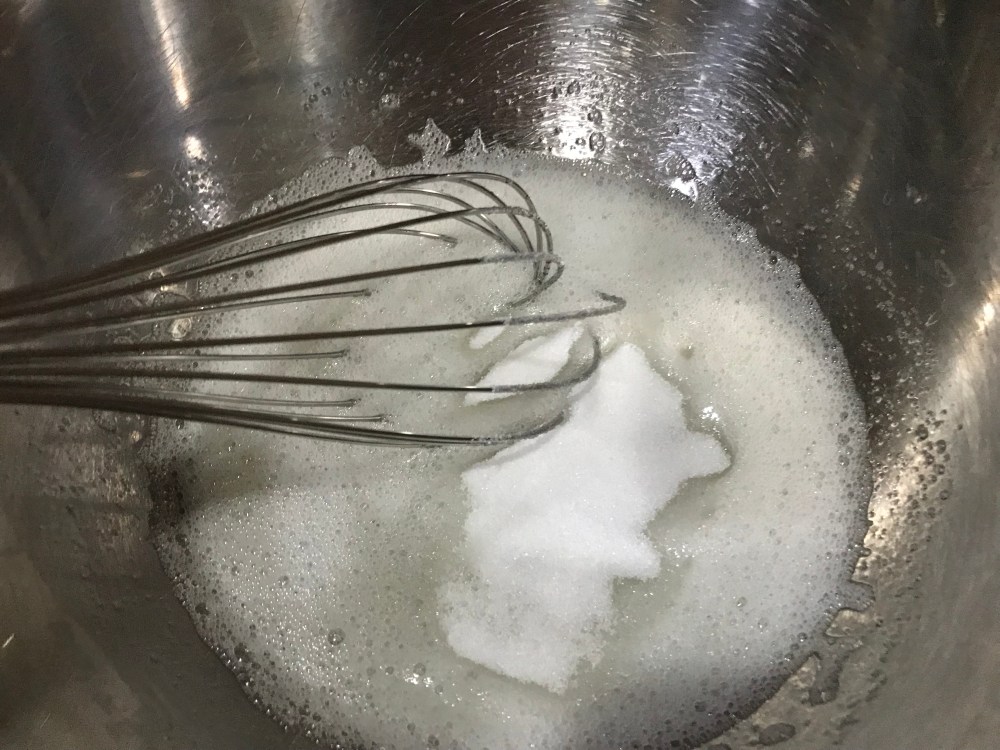 1. Place egg whites in a metal mixing bowl. Prepare a pot of water and bring it to a simmer with low heat. Cut butter into cubes and leave it to soften a while.