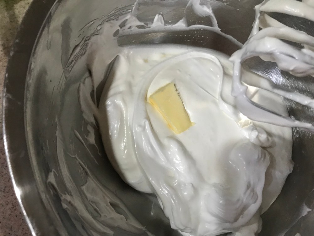 10. After all the butter has been added, use a spatula to smooth it out. It won’t look so perfect yet, but will smoothen out further as you frost on the cake.