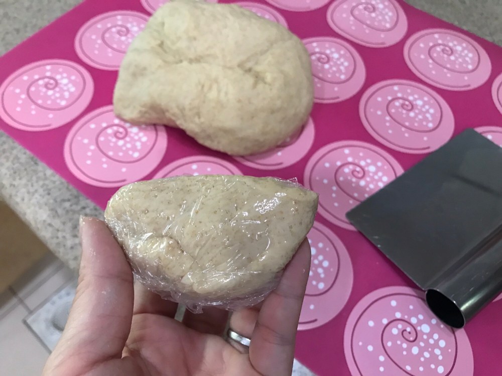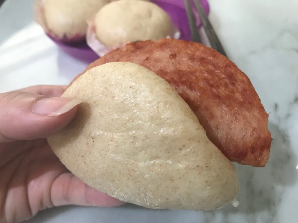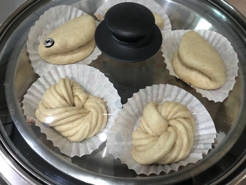 Think I got it right this round, through hand kneading. We really mustn’t over knead baos as they can end up too chewy (unless you like it so). I also added some wholemeal flour and used some old dough, and thankfully there were no wrinkly ones.