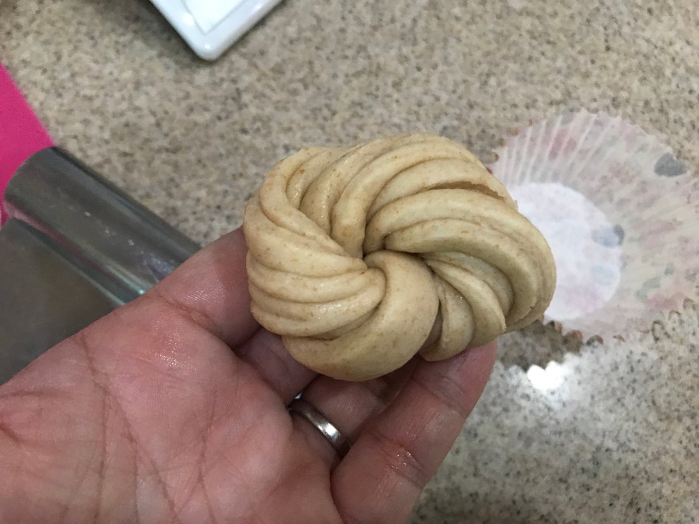 8. Unfold gently, twist and form a round shape. Place in baking paper.