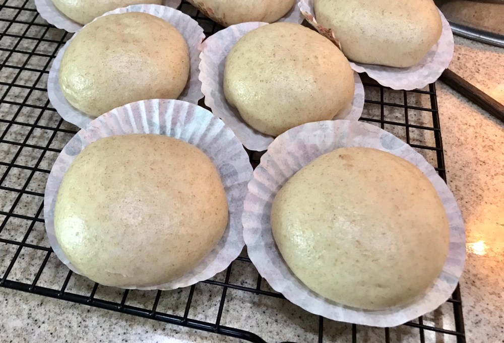 10. Place baos in the cool steamer and proof for about 20 to 40 min. Baos should feel soft yet bounce back when press. Do not overproof or you will get wrinkly skins.