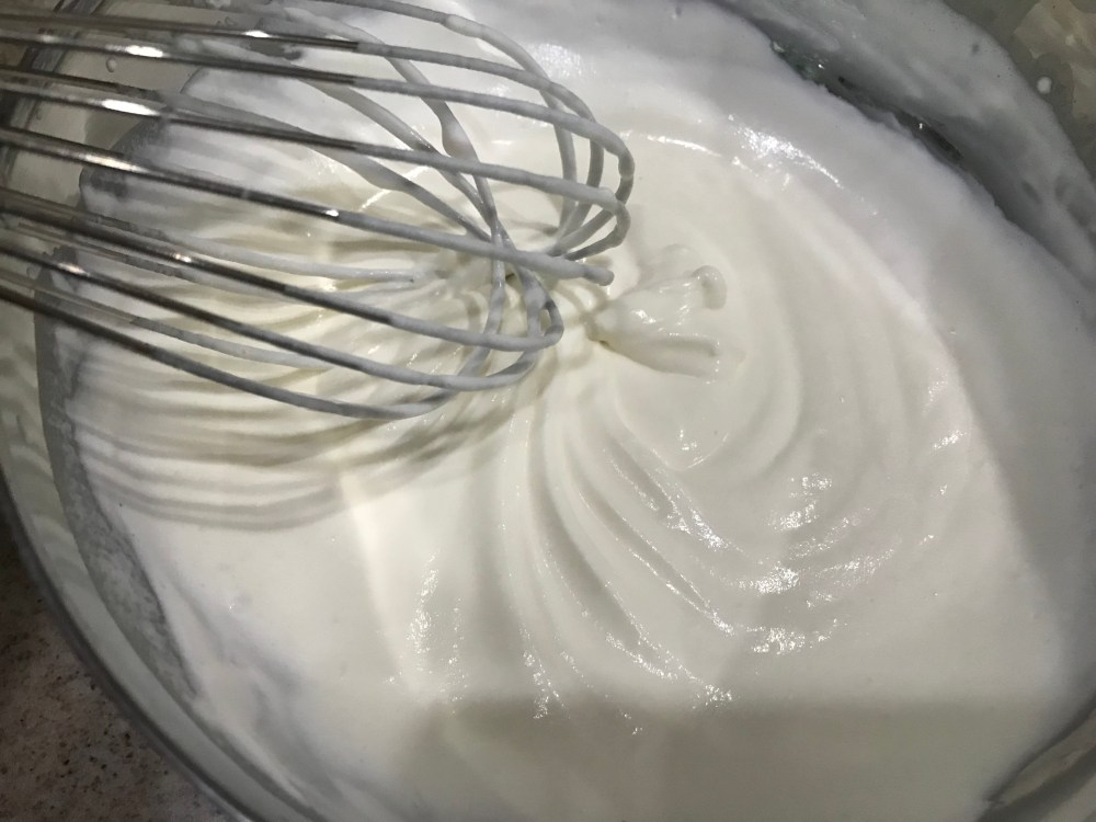 7. Whisk till you can see the swirls on the cream but still soft. Do not over whip or it will separate into butter. Set this aside in the fridge.