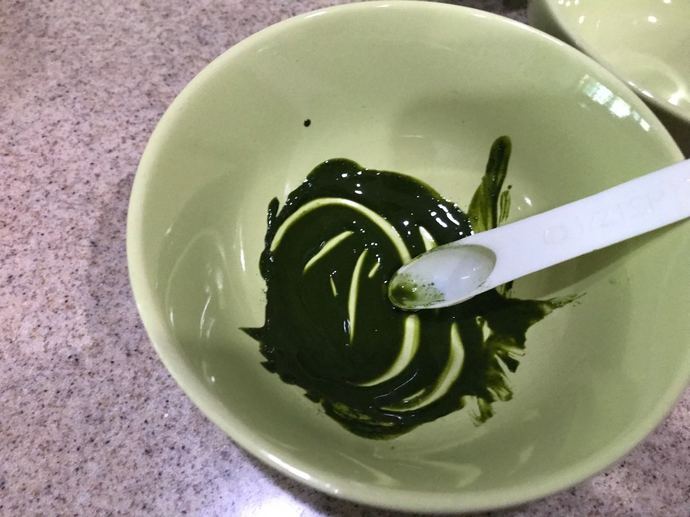 9. Add 1-2 tsp water to the first 4 bowls to dissolve the powder into a paste.