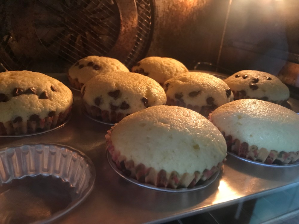 6. Top with chocolate chips if you like. Bake at 180 deg C for 25 min.