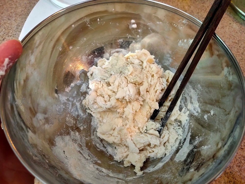 1. Mix flour, salt and warm water in a mixing bowl. Hand knead for 5-10 min till dough comes together. Rest for 10 min and knead again to form a smooth and elastic dough.