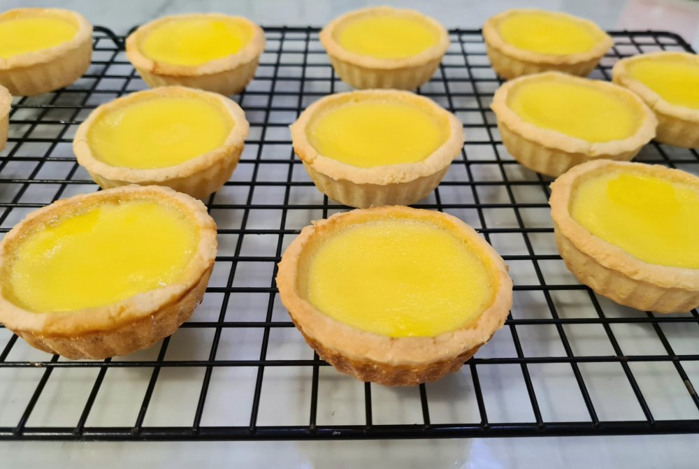 When baking the egg tarts, there’s a need to stand by the oven to ensure the eggs don’t balloon, collapse and over baked to a rubbery texture.