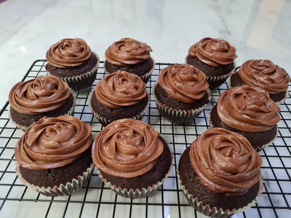 Converted a popular recipe to cupcakes and also used whipped ganache as topping. This is a delicious recipe, very choclatey and very fast and easy to make for a party.