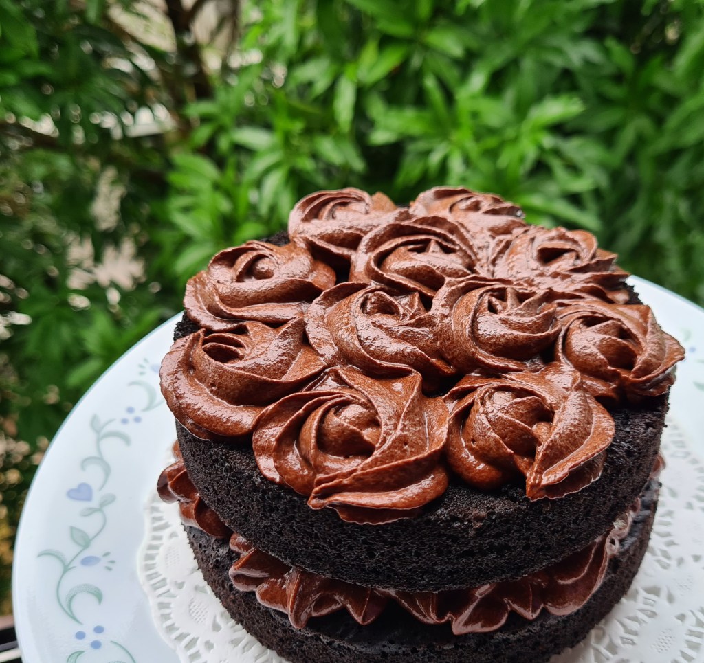 I have also baked this same recipe in two 6 inch round tins, stack them up, and used the same amount of ganache for a birthday cake.