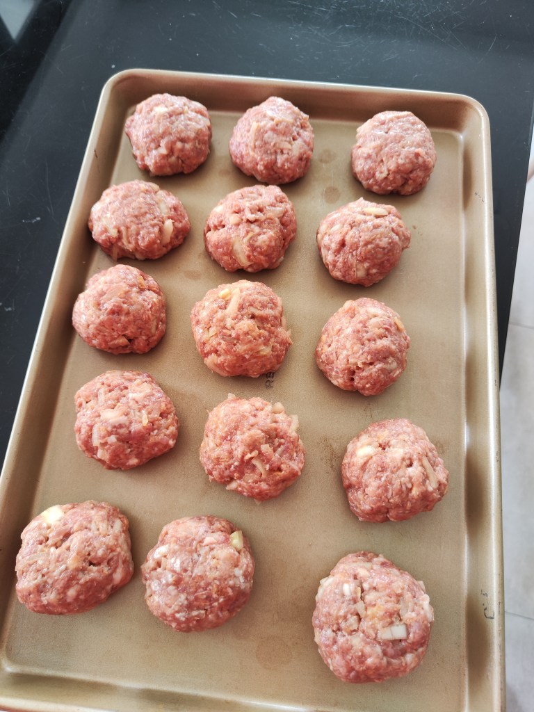 Ok, this dish really doesn’t look so fancy, especially since I didn’t take a picture of the glossy glaze that I made along with it. But it’s a family favorite and fairly easy to do, and nutritious for growing kids. I make it so often cos the kids like it. The patties are tender and juicy with the addition of pork.