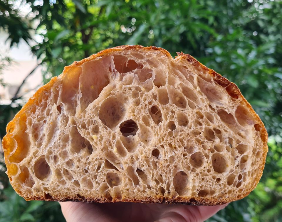 Pure sourdough, all home made and absolutely no commercial yeast. It has been known to offer numerous health benefits with low Glycaemic Index (GI) and gluten content. The long, tedious process results in a healthy, delicious bread with complex flavours.