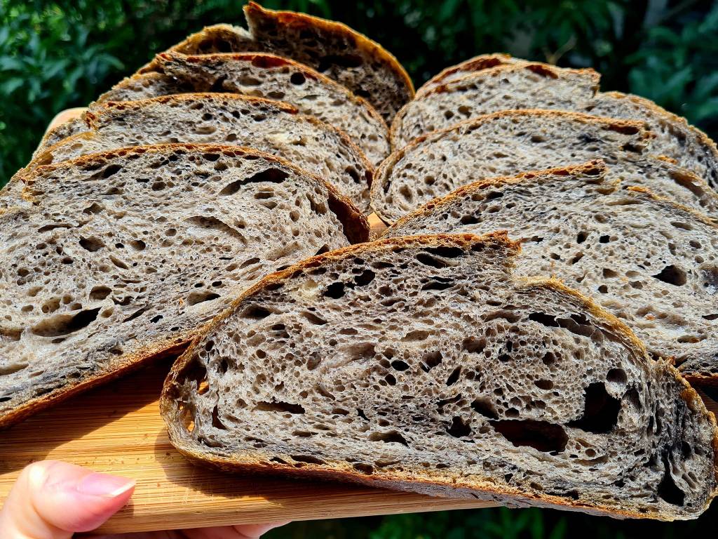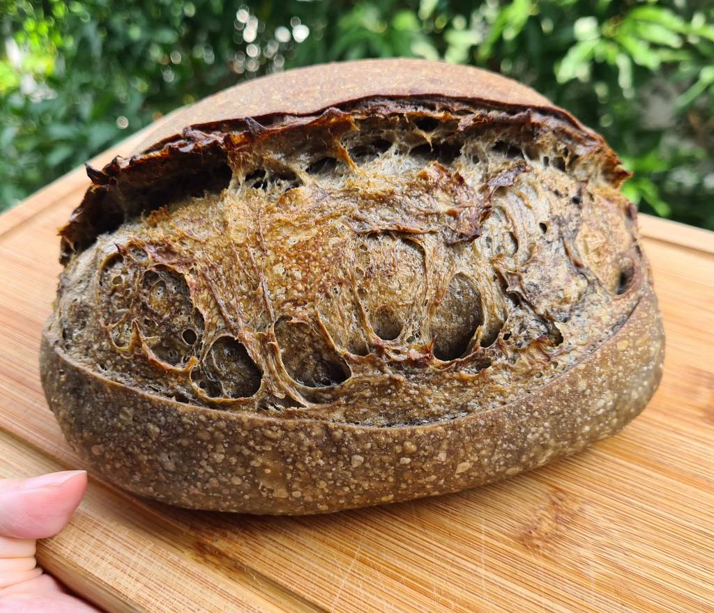 Black sesame sourdough with sesame paste from 100% toasted black sesames grounded to a fine paste.
