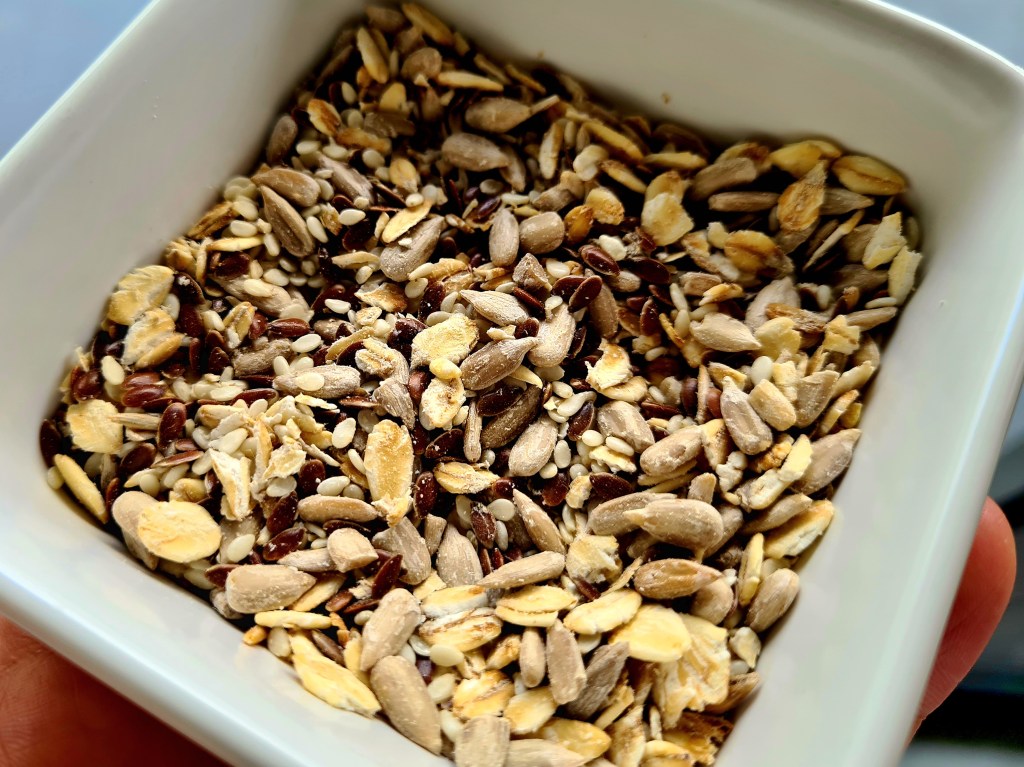 Super healthy version that contains oat and a blend of mixed seeds – flax, sunflower, white sesame.