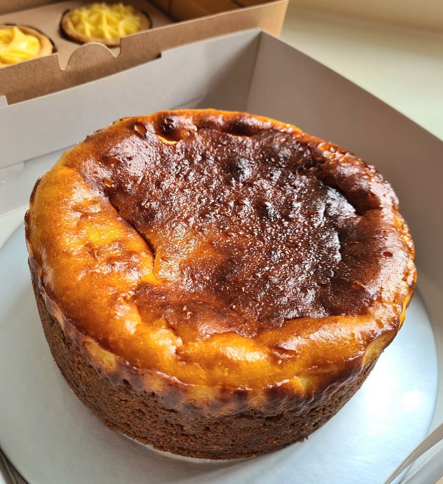Luscious cheesecake with burnt caramelised aroma and a biscuit base. Custardy when warm and creamy when chilled. Made with premium American and European dairy ingredients only.